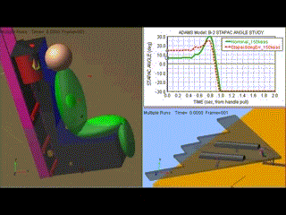Virtually any object – or hundreds of objects, simultaneously – can be analyzed for behavior in nearly any gravity field, applied load, atmospheric surroundings, mechanical collisions and interactions – all while reporting each part’s load, acceleration, velocity, and displacement, in all six degrees of freedom (X, Y, Z axis, and rotations around each), as a function of time.